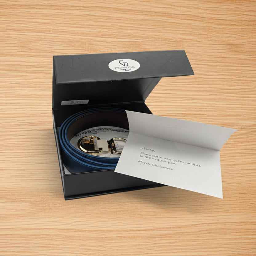 This Red Men's Double Loop Belt engages a track on the back of the strap that allows for 1/4 inch adjustments. The straps are 1-1/4 inches wide and can be cut to fit waists from 22 inches up to 45 inches. They have full grain leather on the face and split grain leather on the back.